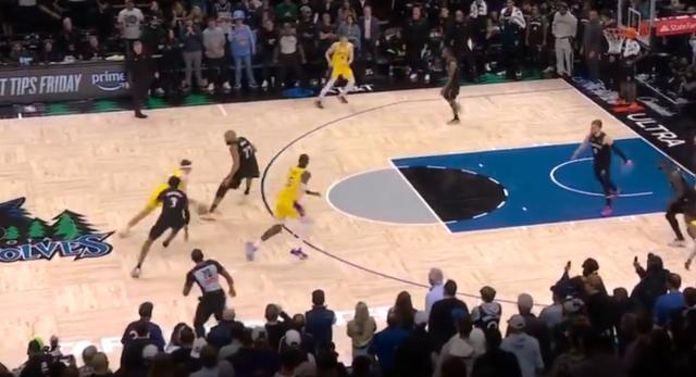 6.6秒,湖人边线发球,里夫斯接球之后艾顿上来挡拆。戈贝尔上提准备大延误里夫斯,但被里夫斯抓到空档直接从中间穿过。来到罚球线的里夫斯,面对迪文琴佐的补防高抛出手,球进灯亮,压哨绝杀了森林狼!