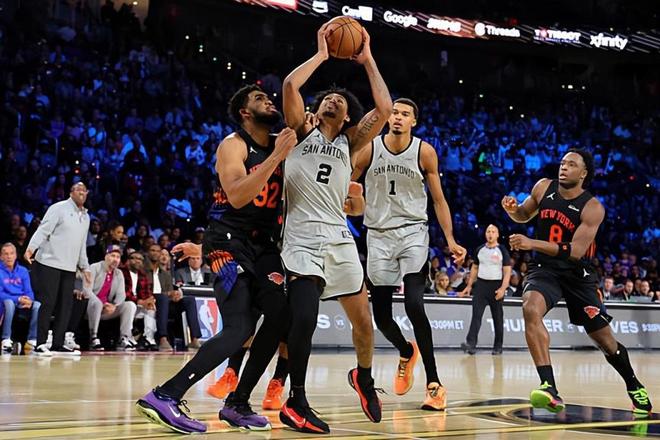 本场比赛中,马刺虽然输掉了比赛,但是球队的替补后场新秀迪伦-哈珀(Dylan Harper)的表现还是具备一定的亮点的。哈珀全场出场28分23秒,投篮14中7,三分线外7中5,罚球2中2,得到了全队最高分21分外加7篮板的数据,其中包括了3个前场篮板,还有3次犯规,正负值为-15。马刺绝大多数球员在本场比赛中的手感都是不太理想的,反而是哈珀这样一名之前外线投篮稳定性不太理想的球员,在本场比赛中通过自己的投篮完成了大量的得分。不仅如此,哈珀在前后场篮板争抢方面的表现也是可圈可点的,同样起到了不小的作用。不夸张地说,在马刺进攻端如此吃力的情况下,要不是有哈珀的强势表现,球队在进攻端只会显得更加吃力。从本场比赛的内容来看,哈珀也是真的尽力了,球队的这场失利,也和他没有什么太大的关系。