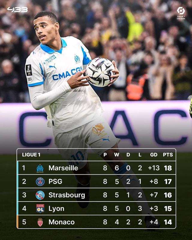 法甲第8轮比赛,格林伍德用一场载入史册的表演:单场狂轰四粒进球,帮助马赛在主场6-2血洗勒阿弗尔。在罗伯托·德泽尔比的带领下,马赛以1分优势力压巴黎圣日耳曼,登上法甲榜首,整个法国南部为之沸腾。